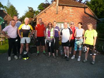 We set off at 6pm and arrive at the chosen local pub, not too far from Horsham for refreshment and food by 8pm. Most cyclists then remount their bikes at the end of the evening for the short ride home. Some leave a car at the pub.